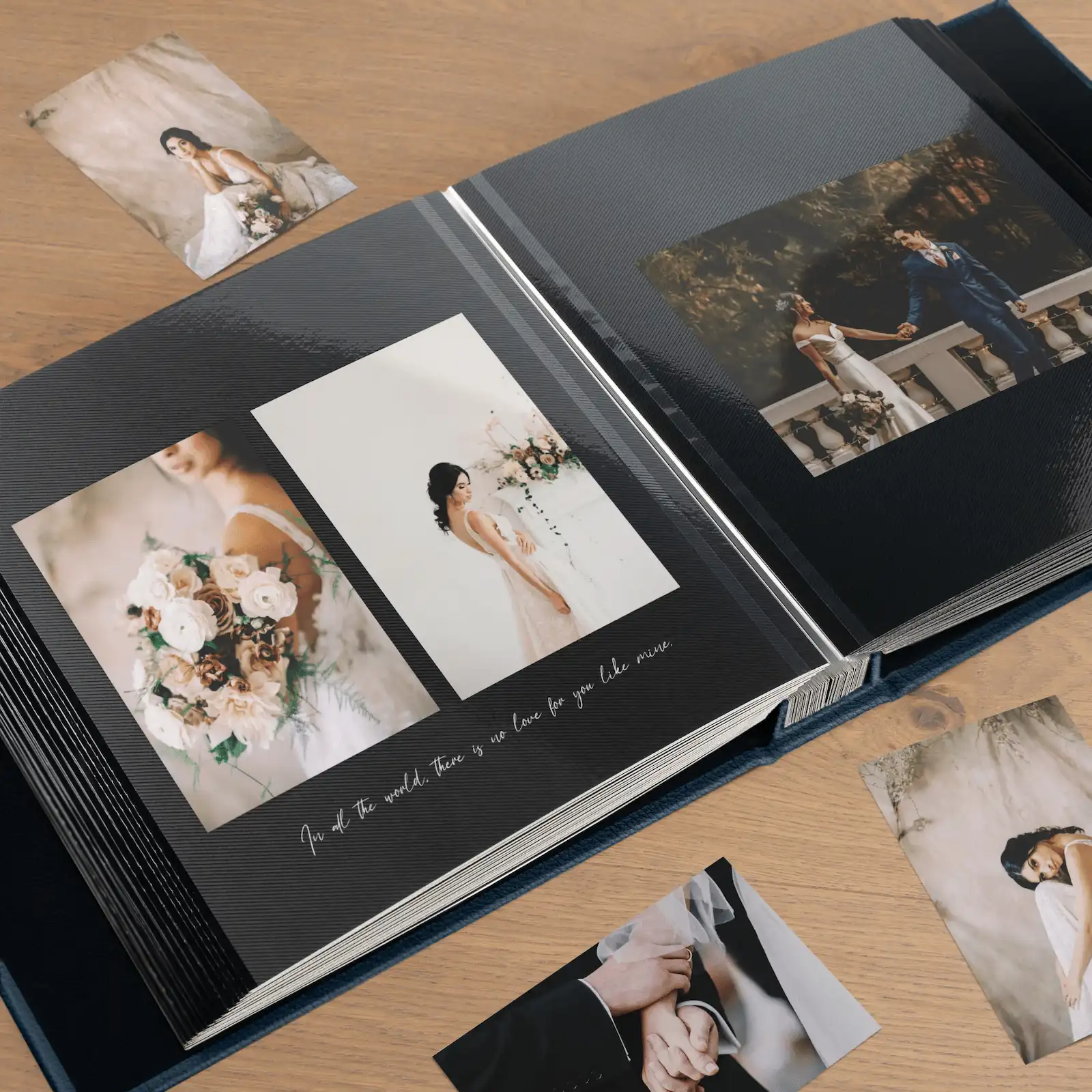 This unique self-adhesive album is a beautiful way to display your precious photos. Handcrafted and custom-made to your taste, it’s perfect for preserving memories.