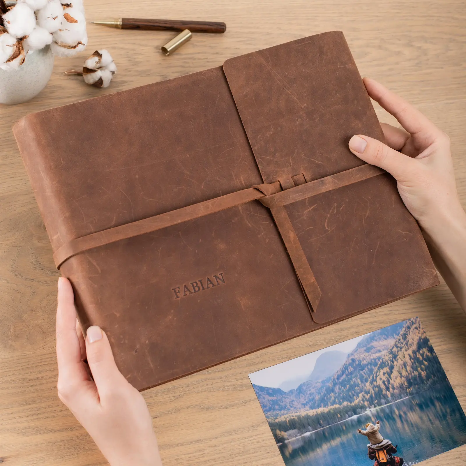 Leather Traditional Photo Album, Rustic Crazy Horse Leather, Wrap tie closure