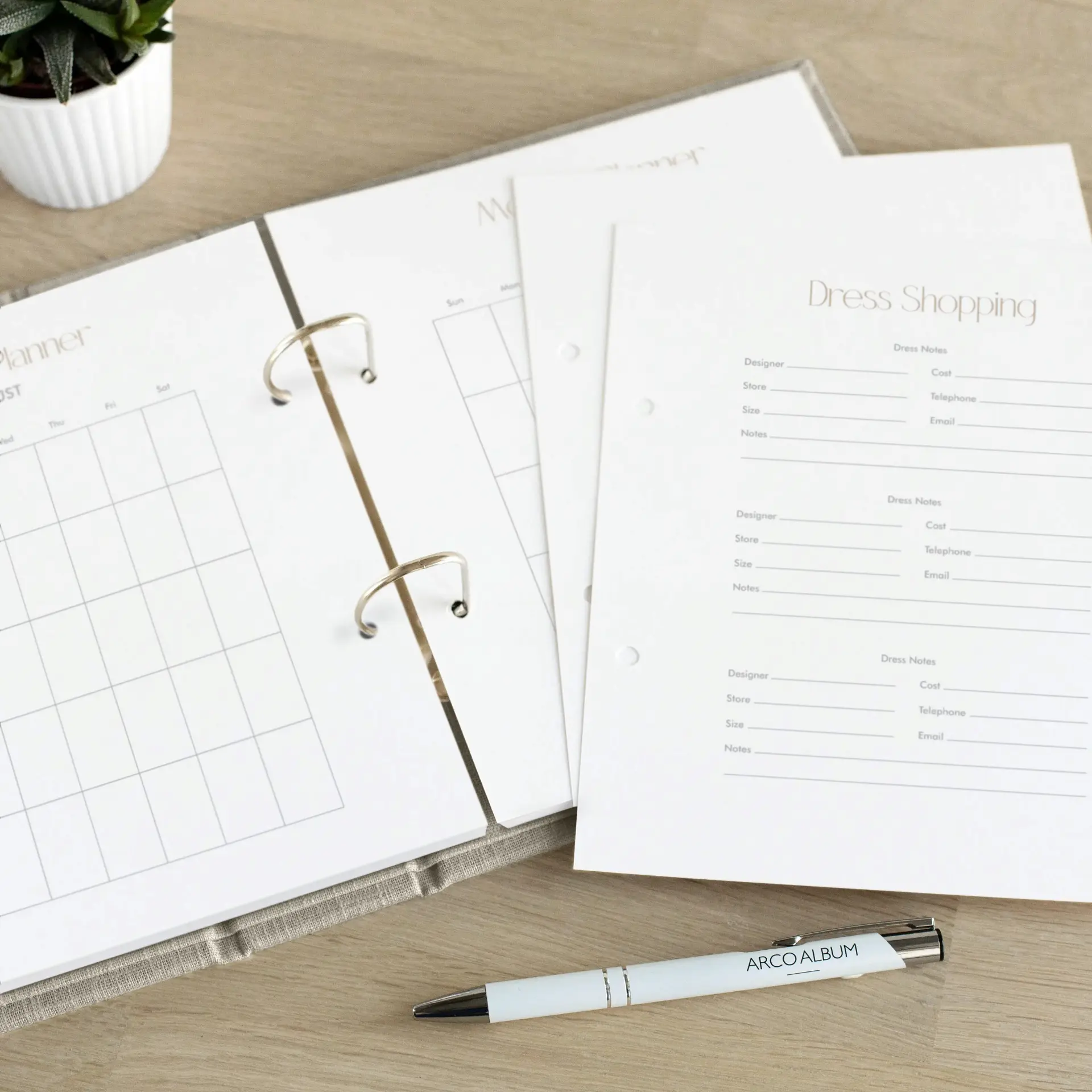 Elevate your wedding planning experience with our Wedding Planner Organizer, meticulously designed to streamline every detail of your special day. Crafted with precision and elegance, our organizer offers dedicated sections for budgeting, vendor coordination, guest lists, and more, ensuring nothing is overlooked. Stay organized and inspired with ample space for notes and checklists, making your journey from vision to celebration seamless and stress-free. Make your dream wedding a reality with our Wedding Planner Book, your essential companion for creating unforgettable memories.