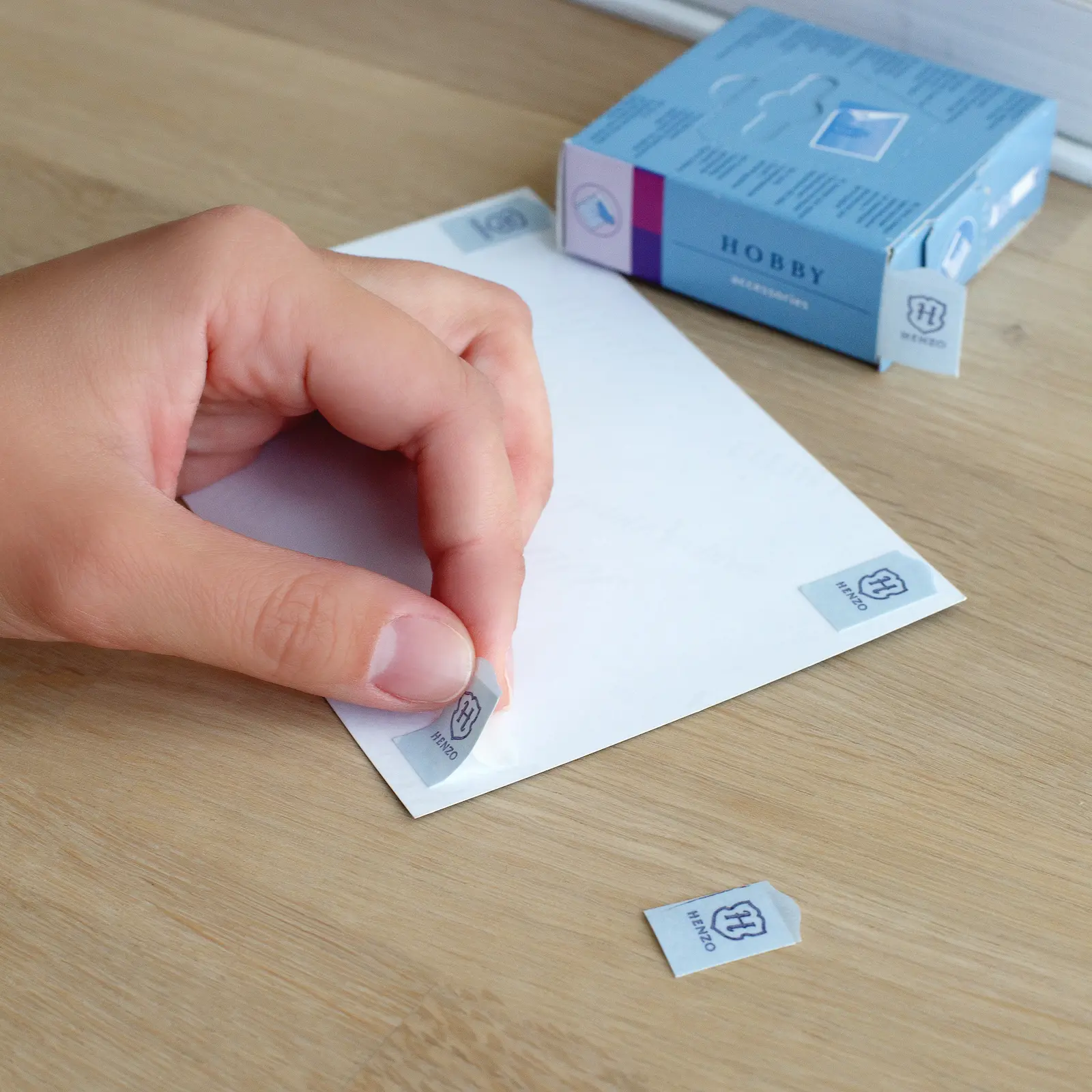 Double-sided sticky tabs. These re-usable adhesive tabs can also be used for mess-free gift wrapping, collages, sticking posters, labels, scrapbooks, etc. Each individual tab is 13 x 18mm.