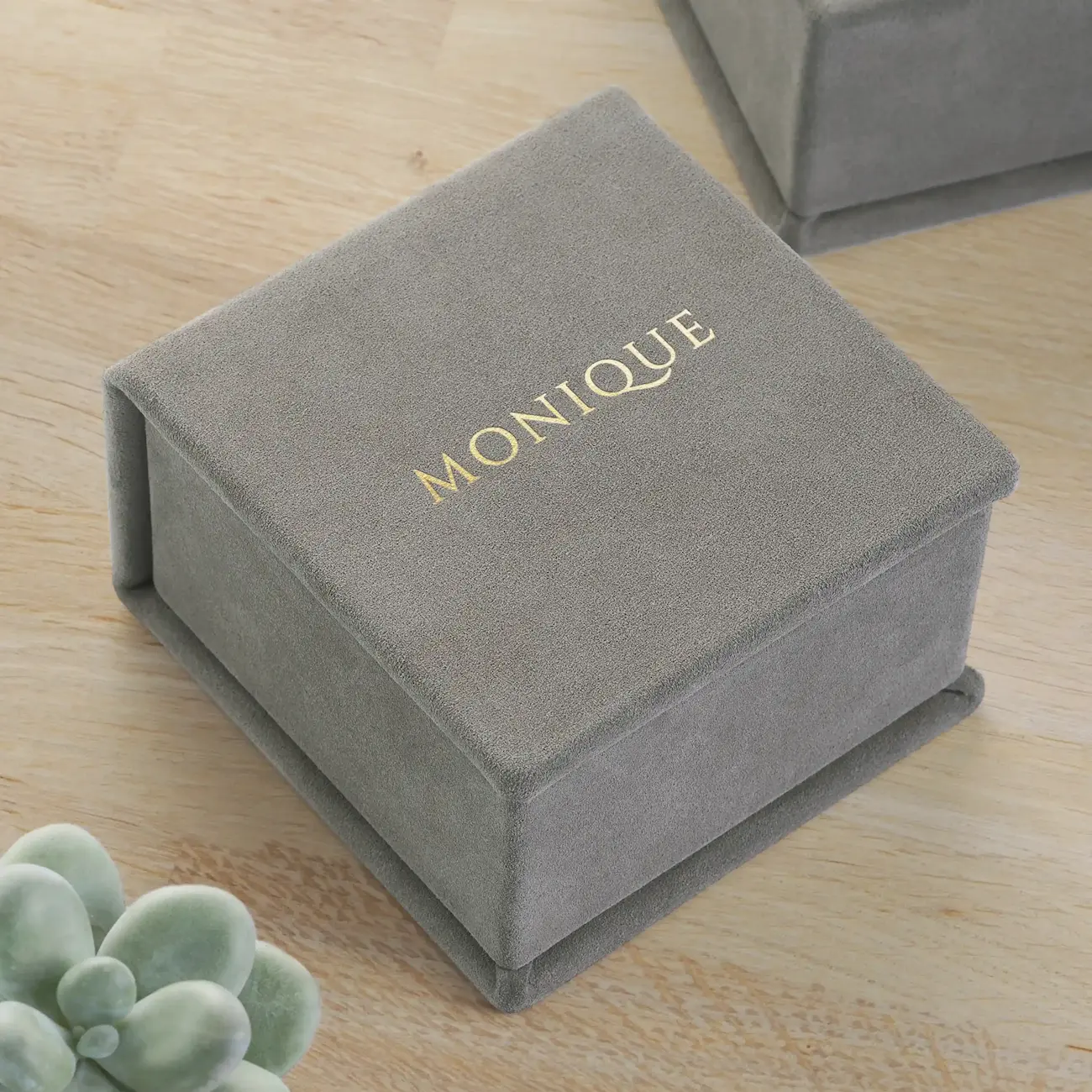 It’s more than just a box; it is the highest quality personalized wedding necklace box! Each box is handmade with care with fine, soft Italian suede, and matching ribbon to give an elegant, lustrous finish.