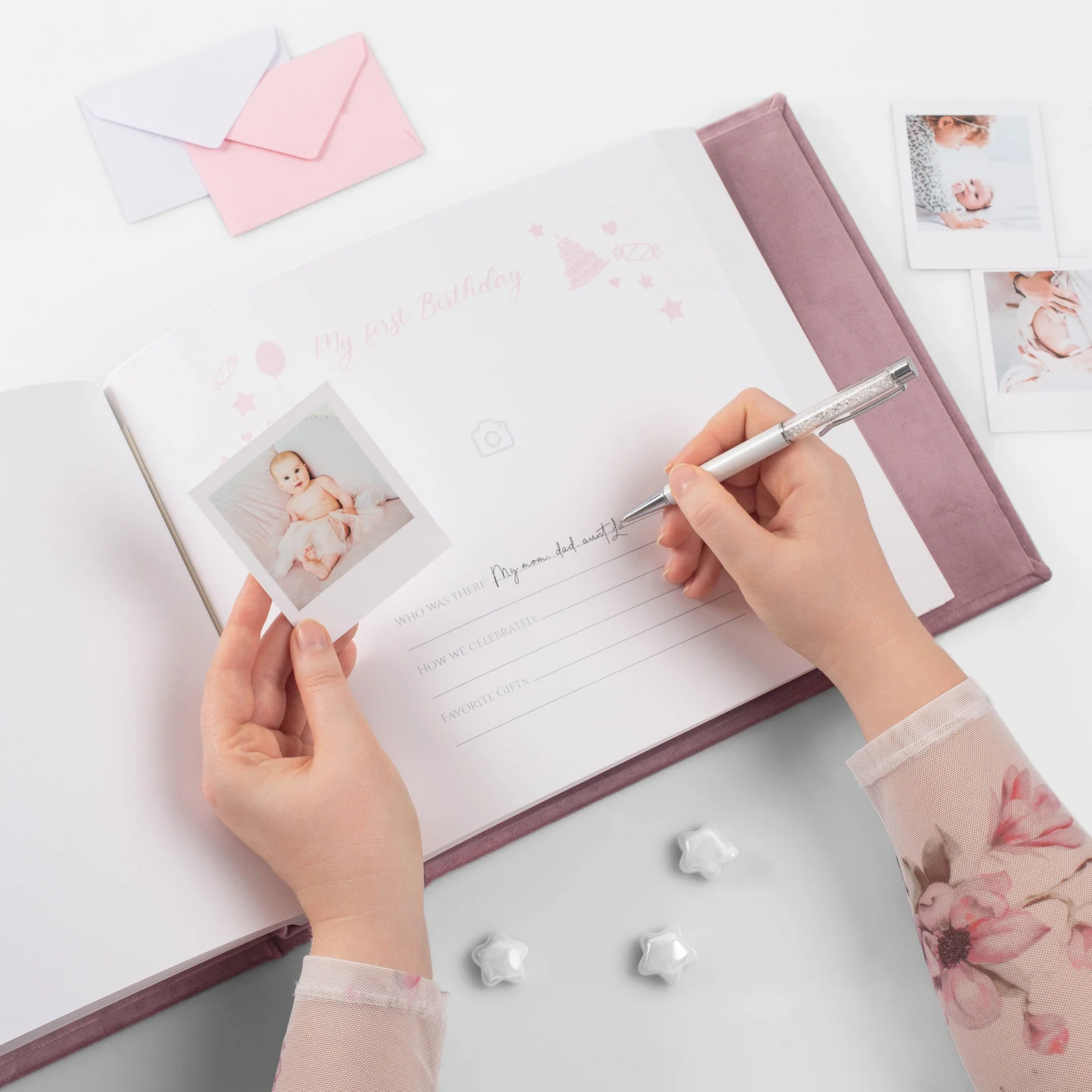 This unique baby book is the best option for moms with plenty of space for images alongside each handwritten detail, following your pregnancy through to your baby's first year or 5 years. The carefully handcrafted album will be perfect for your memories to hold and cherish. It is the best gift for a baby shower or keepsake!