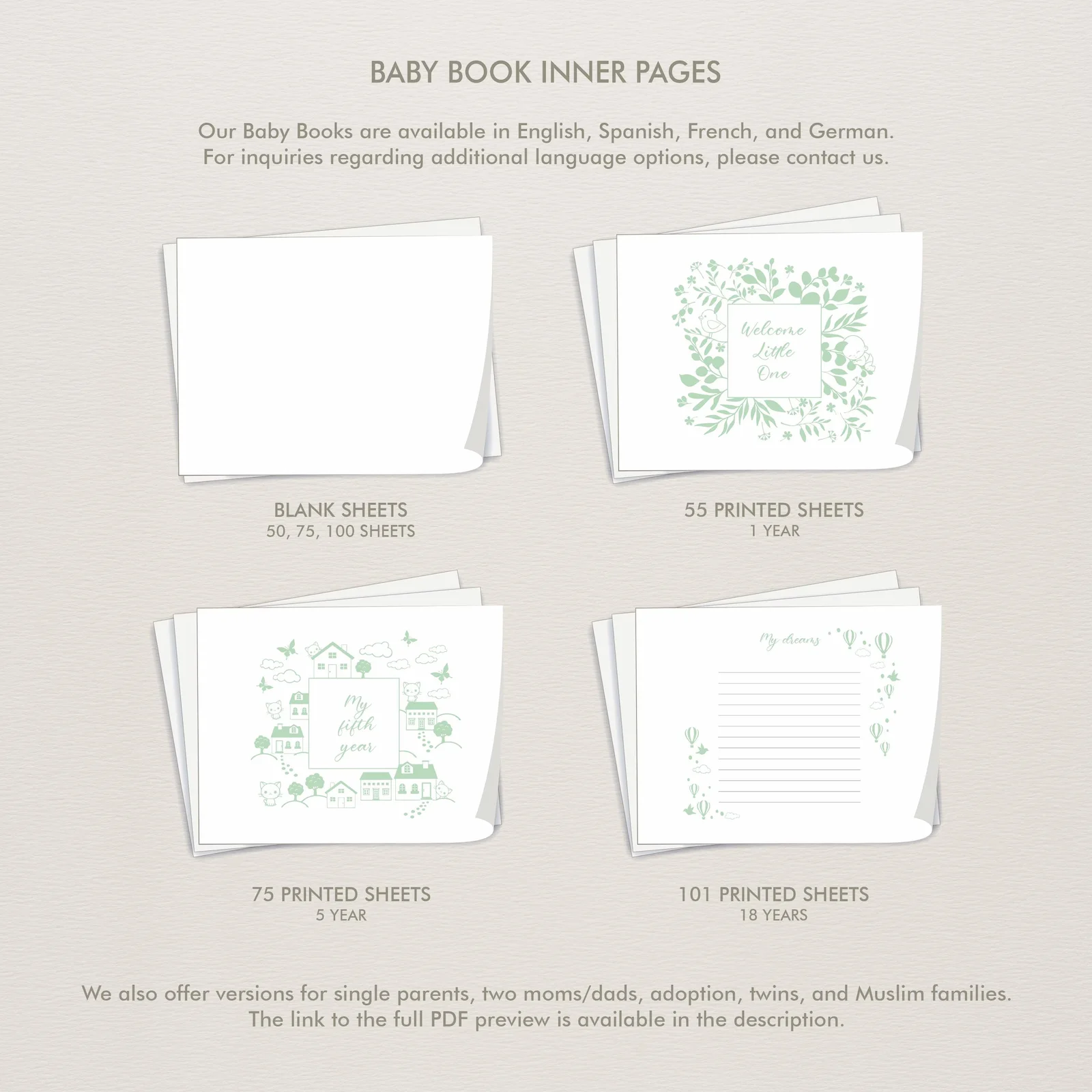 This unique baby book is the best option for moms with plenty of space for images alongside each handwritten detail, following your pregnancy through to your baby's first year or 5 years. The carefully handcrafted album will be perfect for your memories to hold and cherish. It is the best gift for a baby shower or keepsake!