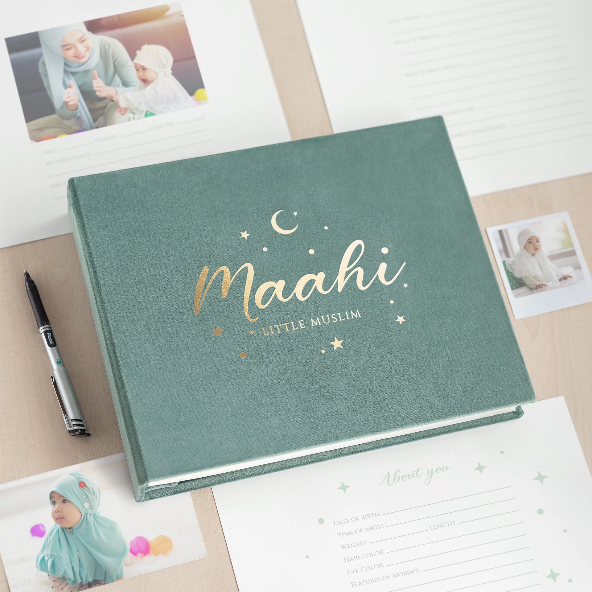 This unique baby book is the best option for moms with plenty of space for images alongside each handwritten detail, following your pregnancy through to your baby's first year or 5 years. The carefully handcrafted album will be perfect for your memories to hold and cherish. It is the best gift for a baby shower or keepsake!