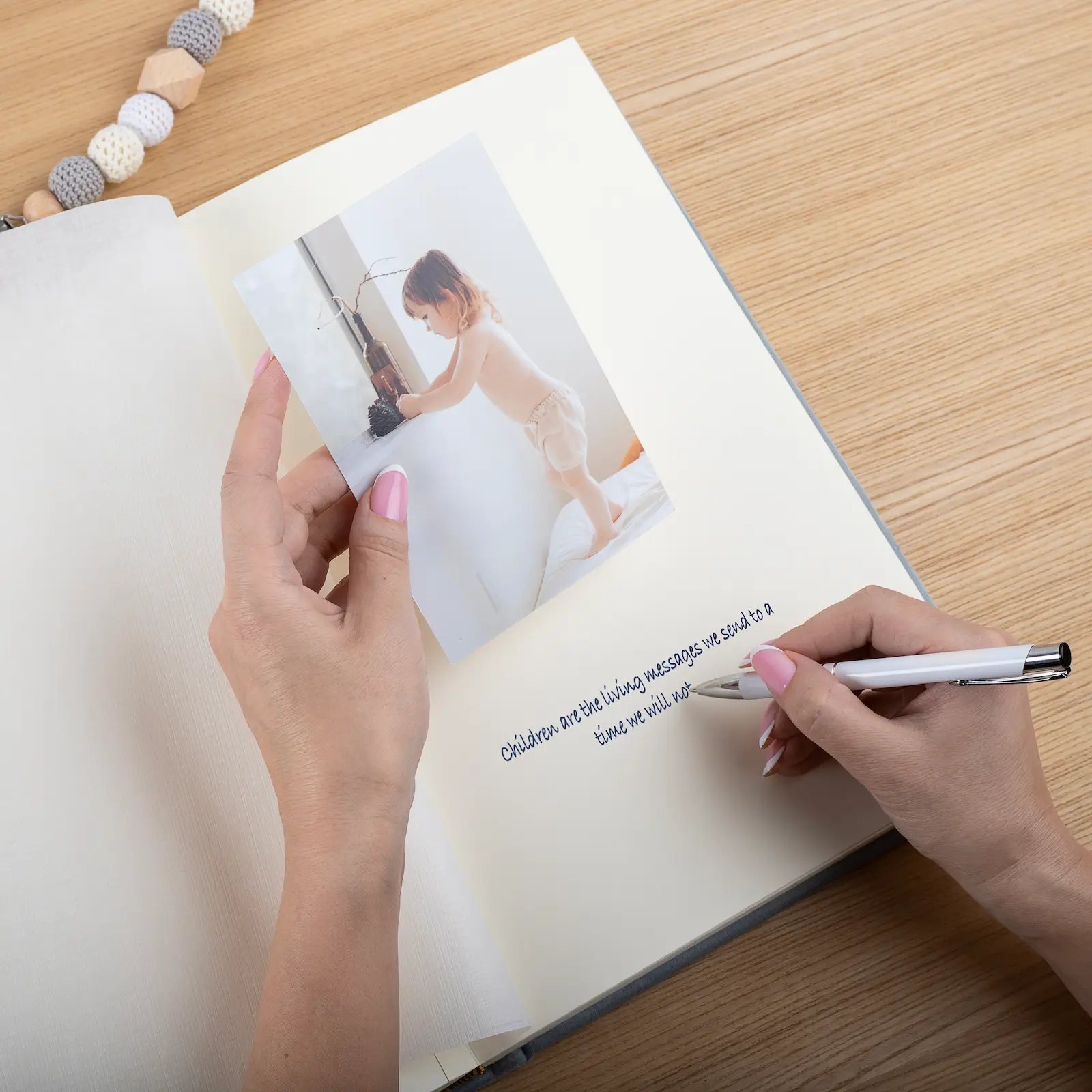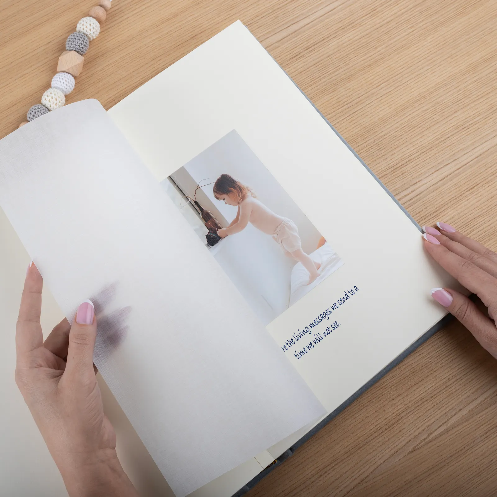 This unique book-bound photo album is thoughtfully handcrafted to display your photos beautifully while keeping them safe. Standard albums include tissue pages, while NTP albums allow clean, uninterrupted spreads.