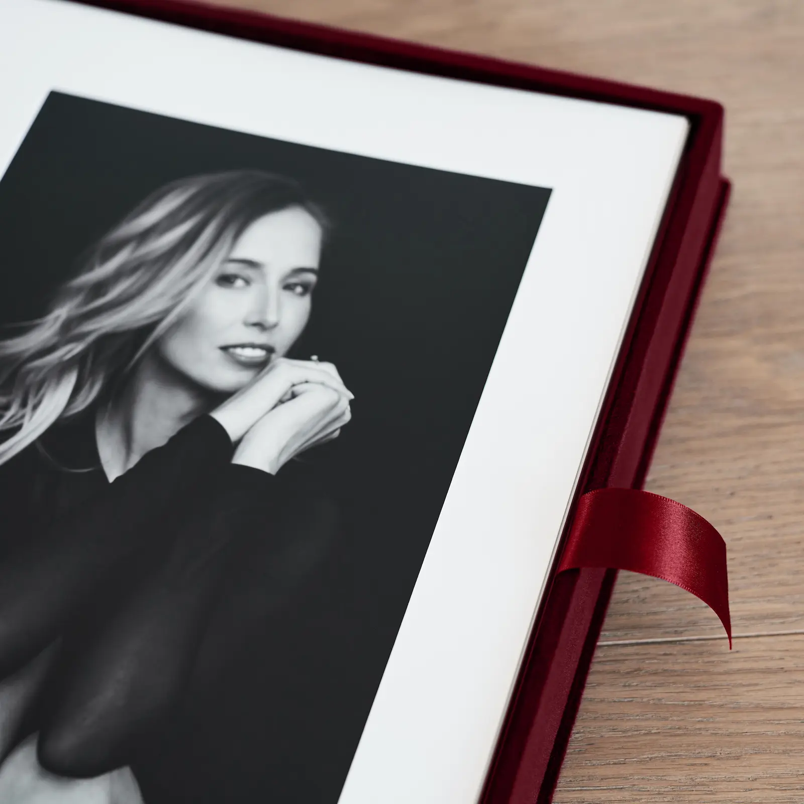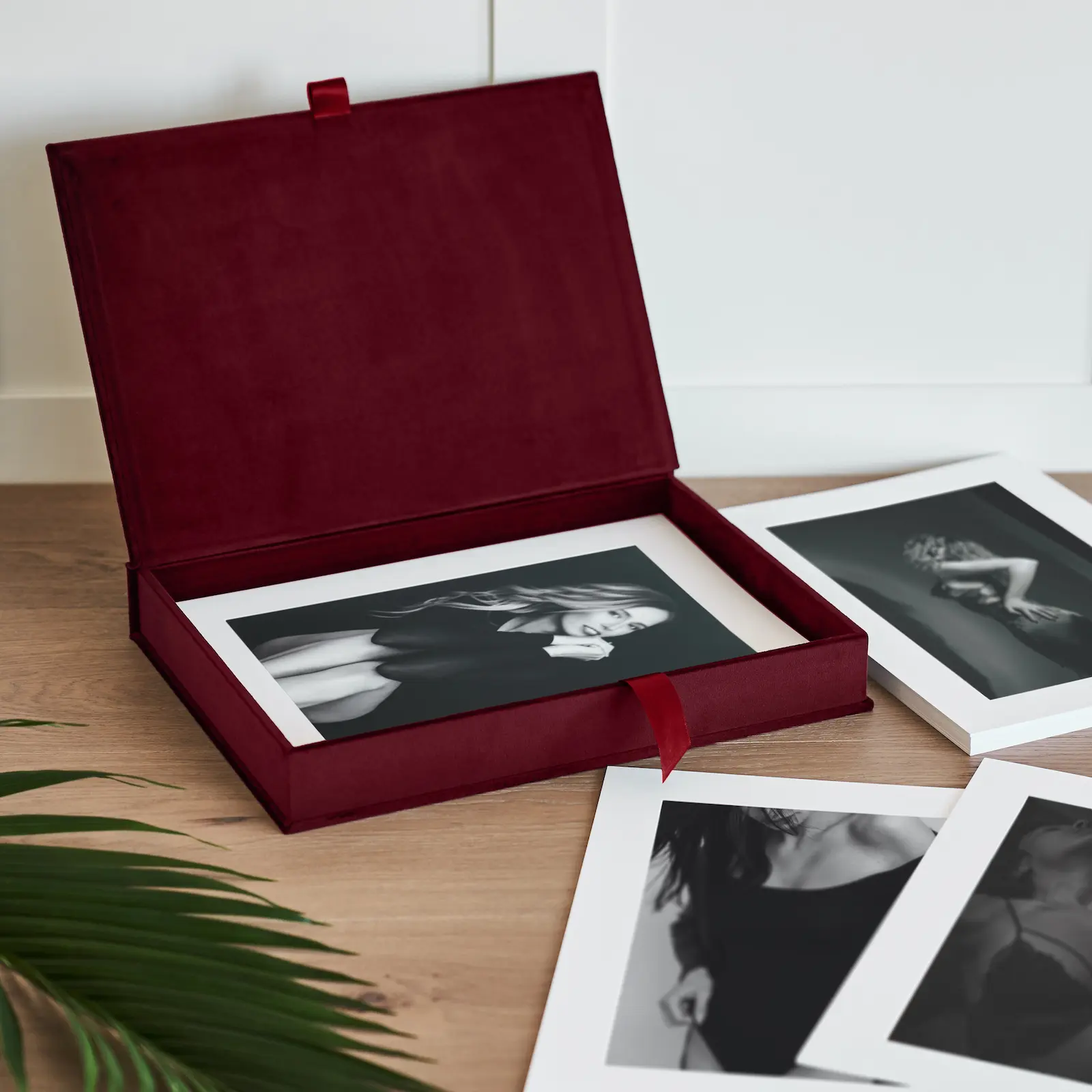 The premium folio box feels luxury and expensive ribbon inside the folio helps to pull out matted prints.