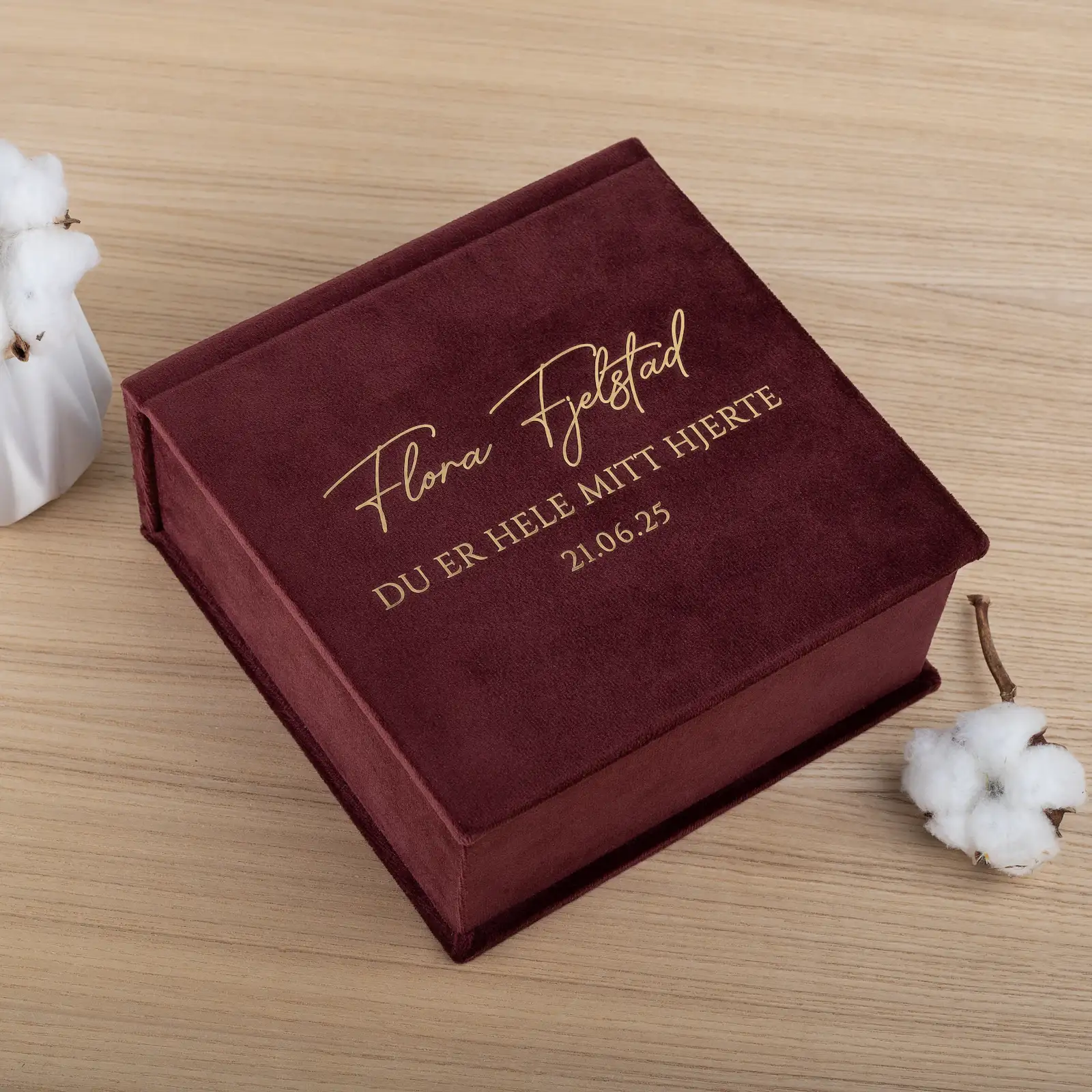 It’s more than just a box; it is the highest quality personalized wedding necklace box! Each box is handmade with care with fine, soft Italian velvet, and matching ribbon to give an elegant, lustrous finish.