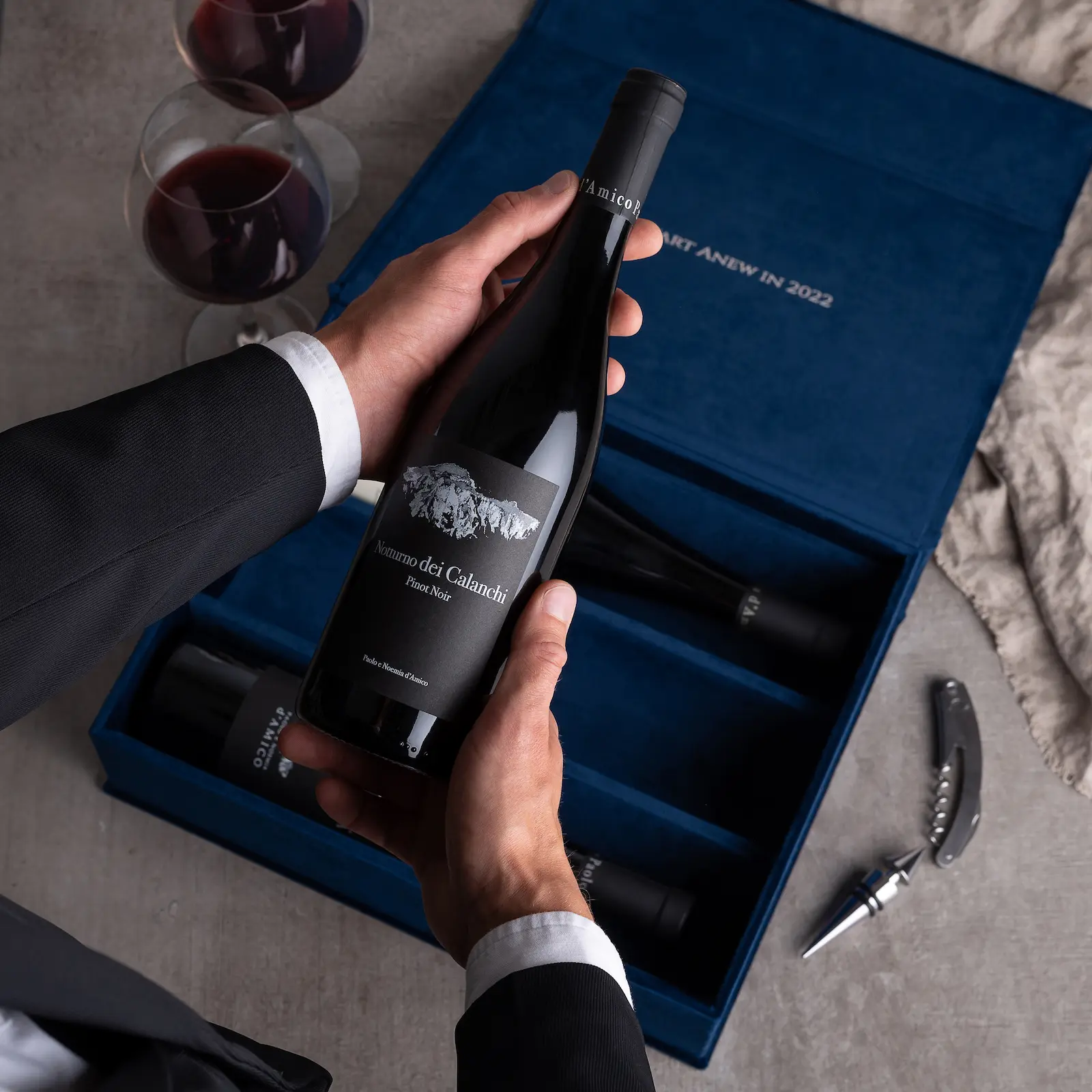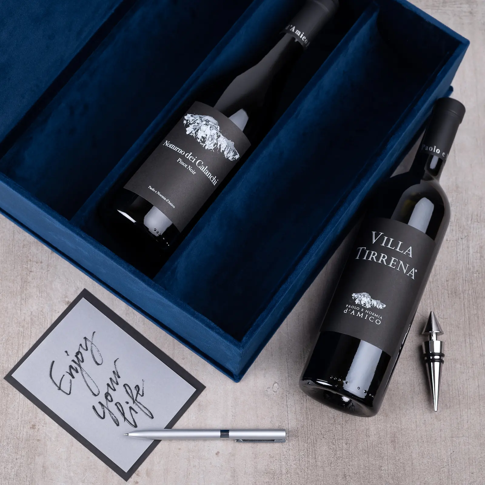 Add the finishing touches to your gift and present it in its very own personalized velvet wine box.